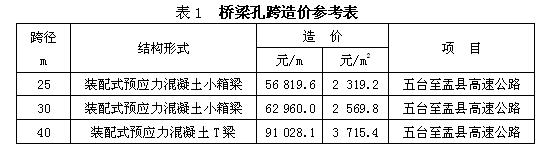 表1為五臺至盂縣高速公路的代表性孔跨工程造價表,供估算工程造價之用?! ?/div>