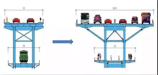 大修后,松浦大橋?qū)⑴f貌換新顏,上層拓寬成雙向6車道,橋面寬24.5米,不再承擔(dān)鐵路交通運(yùn)營的下層,也將作為慢行交通過江專用通道。