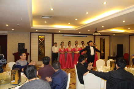 之后,就是橙子最喜歡的一項(xiàng)了:晚宴。晚宴時(shí)刻應(yīng)該是大家最輕松的時(shí)候,觥籌交錯(cuò),大家歡歡笑笑的敬酒,聊天。也在期間結(jié)識(shí)了更多的朋友合作伙伴。甚至在晚宴后期,進(jìn)行了歌唱比賽。大家都“踴躍”參加,甚至院長(zhǎng)也高歌一曲,為大家助興。