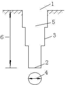 1-孔口;2-孔底;3-孔壁;4-孔經;5-換經;6-孔深