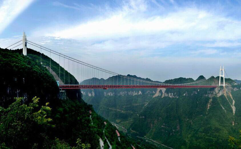 橋面支承在懸索(通常稱大攬)上的橋稱為懸索橋。英文為Suspension Bridge,是"懸掛的橋梁"之意,故也有譯作"吊橋"的。"吊橋"的懸掛系統(tǒng)大部分情況下用"索"做成,故譯作"懸索橋",但個(gè)別情況下,"索"也有用剛性桿或鍵桿做成的,故譯作"懸索橋"不能涵蓋這一類用橋。和拱肋相反,懸索的截面只承受拉力。簡陋的只供人、畜行走用的懸索橋常把橋面直接鋪在懸索上。通行現(xiàn)代交通工具的懸索橋則不行,為了保持橋面具有一定的平直度,是將橋面用吊索掛在懸索上。和拱橋不同的是,作為承重結(jié)構(gòu)的拱肋是剛性的,而作為承重結(jié)構(gòu)的懸索則是柔性的。為了避免在車輛駛過時(shí),橋面隨著懸索一起變形,現(xiàn)代懸索橋一般均設(shè)有剛性梁(又稱加勁梁)。橋面鋪在剛性梁上,剛性梁吊在懸索上。現(xiàn)代懸索橋的懸索一般均支承在兩個(gè)塔柱上。塔頂設(shè)有支承懸索的鞍形支座。承受很大拉力的懸索的端部通過錨碇固定在地基中,個(gè)別也有固定在剛性梁的端部者,稱為自錨式懸索橋。