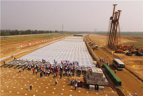 由于CFG樁改善了碎石樁的剛性,使其不僅能很好地發(fā)揮全樁的側阻作用,同時也能很好地發(fā)揮其端阻作用。因此,得以廣泛采用,并取得良好的經(jīng)濟和社會效益。CFG為樁體中摻加適量石屑、粉煤灰和水泥加水拌和,制成一種粘結強度較高的樁體,與樁間土和褥墊層一起構成CFG樁復合地基。樁,樁間土與基礎之間必須設置一定厚度的褥墊層,即褥墊層是高粘結強度樁復合地基的一部分。