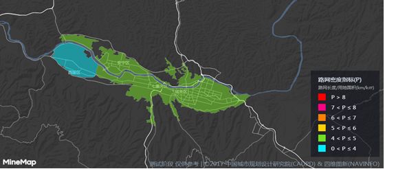 依托大數(shù)據(jù)平臺Minedata,中規(guī)院聯(lián)合四維圖新打造了一個以路網(wǎng)為基礎(chǔ)的數(shù)據(jù)可視化平臺,實現(xiàn)了城市道路網(wǎng)絡(luò)的動態(tài)監(jiān)測,克服了傳統(tǒng)城市工作中道路網(wǎng)密度統(tǒng)計標(biāo)準不統(tǒng)一、數(shù)據(jù)更新時效性差等問題,為合理控制城市道路網(wǎng)密度、促進城市交通規(guī)劃的落實提供了有效支持。