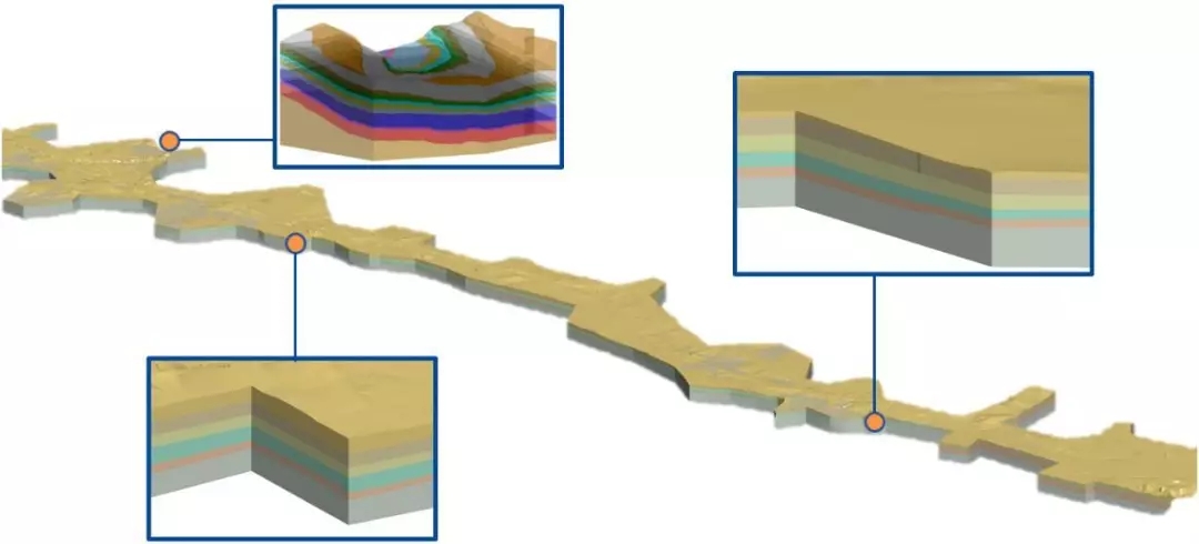 構(gòu)建三維地質(zhì)模型。地質(zhì)條件關(guān)乎設(shè)計(jì)質(zhì)量,項(xiàng)目組研發(fā)了地質(zhì)建模軟件,根據(jù)項(xiàng)目勘探的原始鉆孔、地質(zhì)剖面圖等數(shù)據(jù),建立了項(xiàng)目區(qū)域三維地質(zhì)模型,直觀反映地質(zhì)狀況。