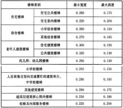 注:螺旋樓梯和扇形踏步離內側扶手中心0.250m處的踏步寬度不應小于0.220m