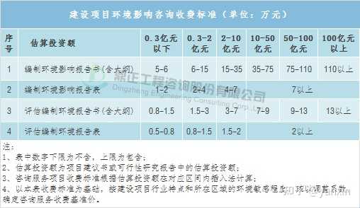 環(huán)境影響咨詢?nèi)≠M可參考《建設(shè)項目環(huán)境影響評價收費標準》(計價格〔2002〕125號),以估算投資額為計費基數(shù),根據(jù)建設(shè)項目不同的性質(zhì)和內(nèi)容,采取按估算投資額分檔定額方式計費。