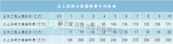 水土保持咨詢服務(wù)取費可參考《關(guān)于開發(fā)建設(shè)項目水土保持咨詢服務(wù)費用計列的指導(dǎo)意見》(保監(jiān)〔2005〕22號),其中可行性研究階段的開發(fā)建設(shè)項目水土保持方案編制費可參考下表標準計列。