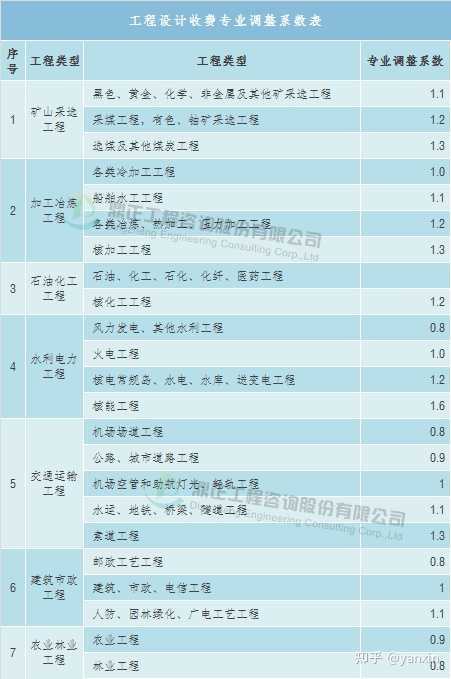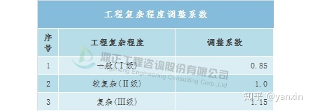 工程復(fù)雜程度調(diào)整系數(shù):0.8~1.2(工程復(fù)雜程度具體調(diào)整系數(shù)由工程咨詢機構(gòu)與委托單位根據(jù)各類工程情況協(xié)商確定)。