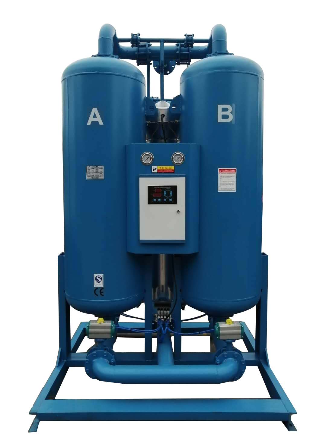 一、吸附式干燥機的操作面板說明:1、數(shù)碼管顯示窗:參數(shù)設置顯示及運行時間倒計時顯示。2、A塔吸附指示燈:指示A塔的吸附狀態(tài)。3、B塔吸附指示燈:指示B塔的吸附狀態(tài)。4、A塔再生...